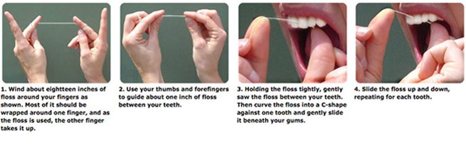 Flossing removes plaque from in between tooth surfaces. Again the use of a particular brand is based on ease of use and personal preference.