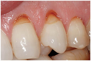 Overzealous brushing can lead to gum recession, painful ulceration of gingiva and triangular-shaped defects in the neck area of the tooth.