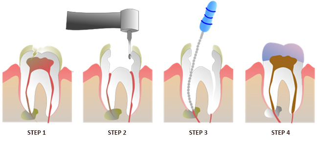 Cleaning of the root canals. This is done using small instruments called hand files and rotary files with a Rotary Endodontic system.