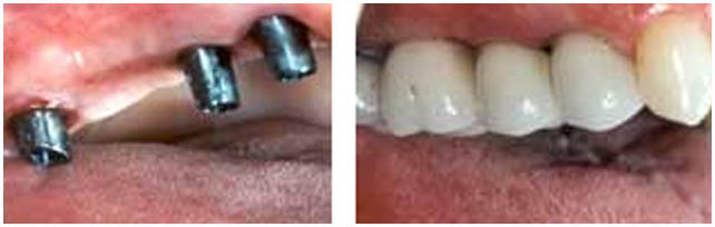 Finally, our Dentists attach a permanent crown to the post to replace the missing tooth Implant post(abutment) The crown is cemented over the post Implant Bridge Implant posts The bridge is cemented on the posts Implant supported denture Implant postsDenture with the Denture fixed on the implants attatchments