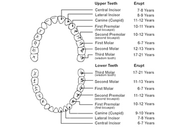 The milk teeth are 20 in number: 2 incisors, 1 canine and 2 molars in each half of each jaw.