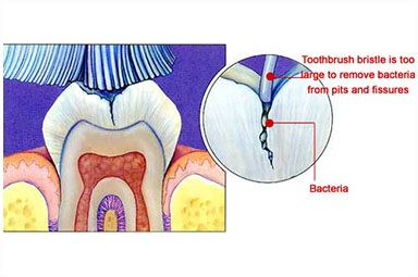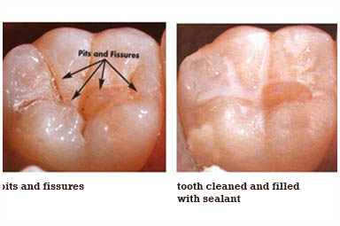 Pits and Fissures are the most common dental problem found in children. Chewing teeth have grooves on the surface like mountain and valleys. These grooves are the hiding and dwelling places for oral bacteria’s causing decay since bristles of a brush do not reach to clean that area. Hence these areas start developing pits and fissures gradually leading to caries. To prevent this our clinic in Vadodara applies “dental sealants” on the surface of the tooth which covers the grooves and protects it from acid attacks and plaque.